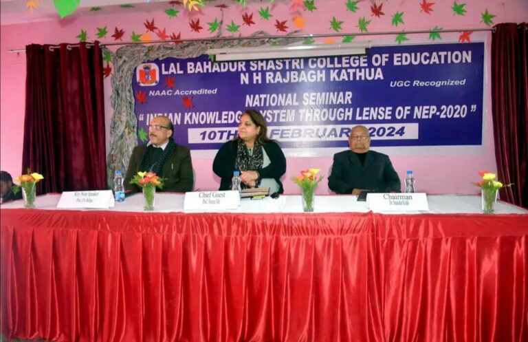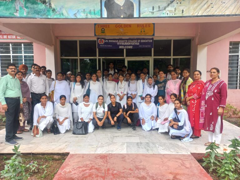 July 24, 2025 15 days Internship program for the students-2025 Lal Bahadur Shastri College of Education in collaboration with Govt. degree College Kathua holds 15 days Internship program for the... Read More September 18, 2024 GDC Kathua signs MOU with LBS College of Education, Kathua PRESS RELEASE (18-09-2024) GDC Kathua signs MOU with LBS College of Education, Kathua A Memorandum of Understanding was signed by... Read More April 9, 2024 Fresher’s Ceremony of Session 2023-25 Today a fresher's ceremony was arranged in LAL Bahadur Shastri college of Education Rajbagh, kathua to welcome the new students... Read More April 9, 2024 Women’s Day-2024 Celebrating #Women’s Day at Lal Bahadur Shastri College of Education . Today on 7th of March 2024Lal Bahadur Shastri College... Read More April 9, 2024 Mahatma Gandhi Rashtriya Seva Puraskar -2024 to Principal Heartiest Congratulations to respected Principal Ma'am Dr. Brij Bala Kohli on receiving Mahatma Gandhi Rashtriya Seva Puraskar -2024 in a... Read More April 9, 2024 Teacher Trainees of B.ED. Semester 1st (2023-25) Teacher Trainees of B.ED. Semester 1st (2023-25) Lal Bahadur Shastri College of Education Rajbagh Kathua visited MIER Special School Jammu... Read More April 9, 2024 75th Republic Day of India Lal Bahadur Shastri College of Education marked the 75th Republic Day of India with pride and patriotism! Worthy PrincipalDr.Brij Bala... Read More April 9, 2024 HAPPY BASANT PANCHAMI-2024 LBS College extends warm wishes to you and your loved ones on the auspicious occasion of Basant Panchami! May the... Read More April 8, 2024 National Seminar on “Indian Knowledge System through the lens of NEP-2020” on 10th February 2024 Lal Bahadur Shastri College of Education Rajbagh Kathua, holds one day National Seminar on Topic “Indian Knowledge System through the... Read More April 8, 2024 Visit to DIET and JNV Basohli, March 2024 Students of Lal Bahadur Shastri College of Education KATHUA visited DIET and JNV Basholi on 11th March 2024.As a part... Read More 1 2 3 4 Next »