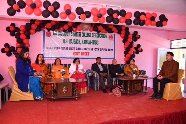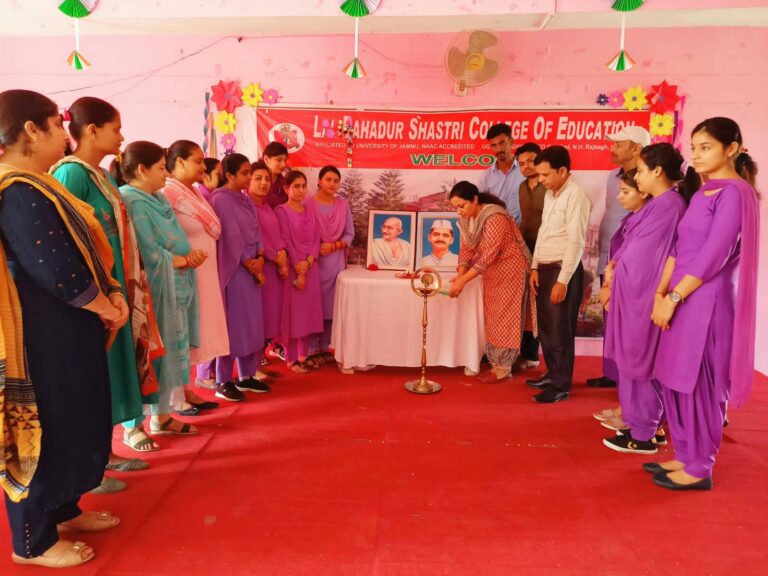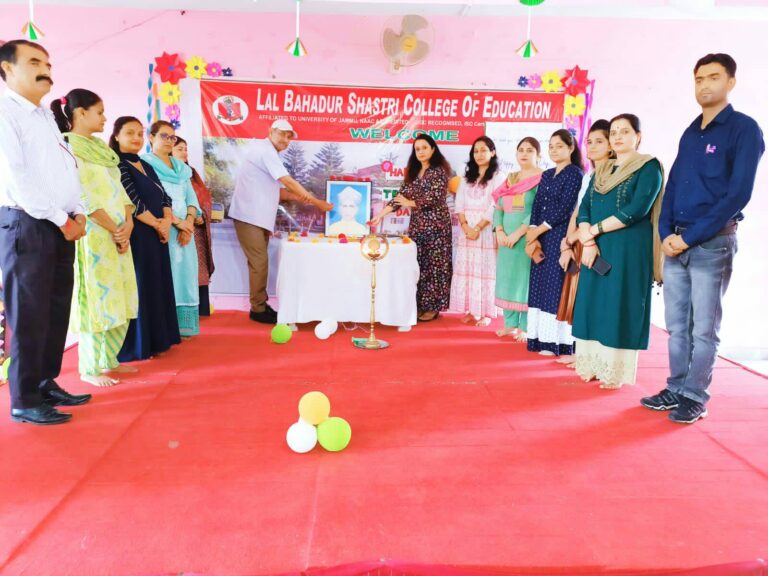 November 10, 2022 Programme on Mental Health Today an event was organised in Lal Bahadur Shastri College of Education NH. Rajbagh kathua by Youth Peace Foundation team... Read More November 10, 2022 Rangoli making 2022 Students of Lal Bahadur Shastri College so Education celebrate the festival of lights by making colourful Rangoli in the college... Read More November 10, 2022 Gandhi Jayanti 2022 A tribute was paid to Mahatma Gandhi ji and Lal Bahadur Shastri ji on the eve of their Birth anniversary... Read More November 10, 2022 Birth anniversary of Iron Man of India Sardar Vallabh Bhai Patel 2022 " Togetherness leads to harmony, harmony leads to peace." To mark the birth anniversary of the Iron Man of India... Read More November 10, 2022 Teacher’s Day 2022 Happy Teacher's Day ! Wisdom, dedication and kindness will always lead you on the right path and inspire to be... Read More July 27, 2022 One Day Workshop on Psychological Testing Lal Bahadur Shastri College of Education N.H. Rajbagh, Kathua hold one day workshop on Psychological Testing Dr. Shiv Mangal Singh... Read More July 23, 2022 Students Of B.Ed 2nd Semester Visited State Council Of Educational Research And Training (SCERT) On Dated 7th July 2022. Students of Lal Bahadur Shastari college of Education B.Ed 2nd semester visited State Council of Educational Research and Training (... Read More July 17, 2022 One day workshop on topic “Blended mode of teaching and learning with reference to NEP 2020 on dated 16th July. Lal Bahadur Shastri College of Education NH- Rajbagh, Kathua holds one day online National Workshop on “Blended mode of Teaching... Read More June 21, 2022 8th International Yoga Day-21st June 2022 "Yoga is the journey of the self, to the self, through the self." 8th International yoga day was celebrated in... Read More May 1, 2022 Glimpses of NAAC 2022 Visit of NAAC 2022 Team in Feb 2022 Click here to see more pics Read More « Previous 1 2 3 4 Next »